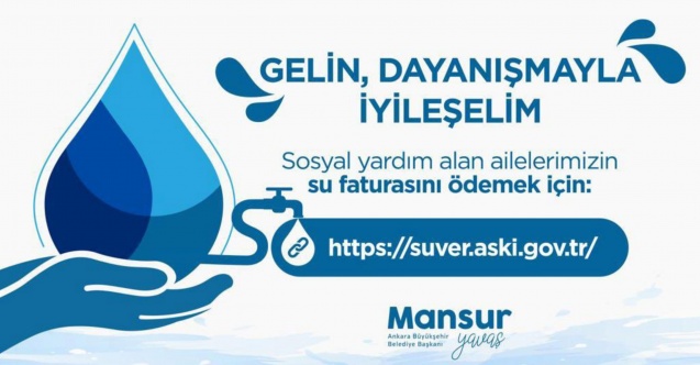 İhtiyaç sahibi vatandaşlar için hayata geçirilen bir diğer kampanya ise ASKİ Genel Müdürlüğü’nün hazırladığı “Su Ver” kampanyası oldu.  https://suver.aski.gov.tr/ adresi üzerinden sosyal yardım alan ailelerin su faturaları ödenebilecek.