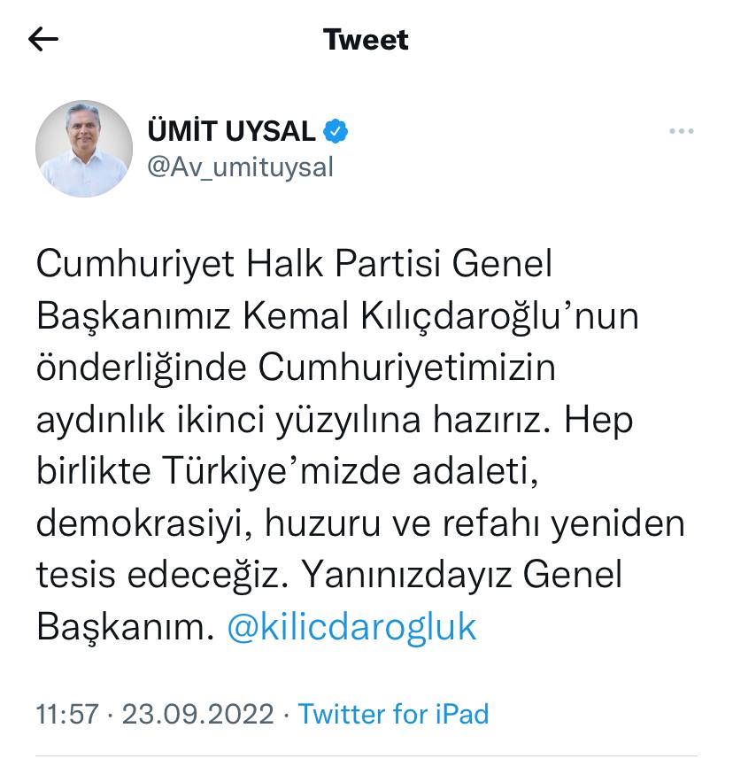 CHP Genel Başkanı Kemal Kılıçdaroğlu’nun İzmir’den yaptığı “Gerçekten benimle misiniz?” çağrısına Antalya’dan ilk yanıt Ümit Uysal’dan geldi.
