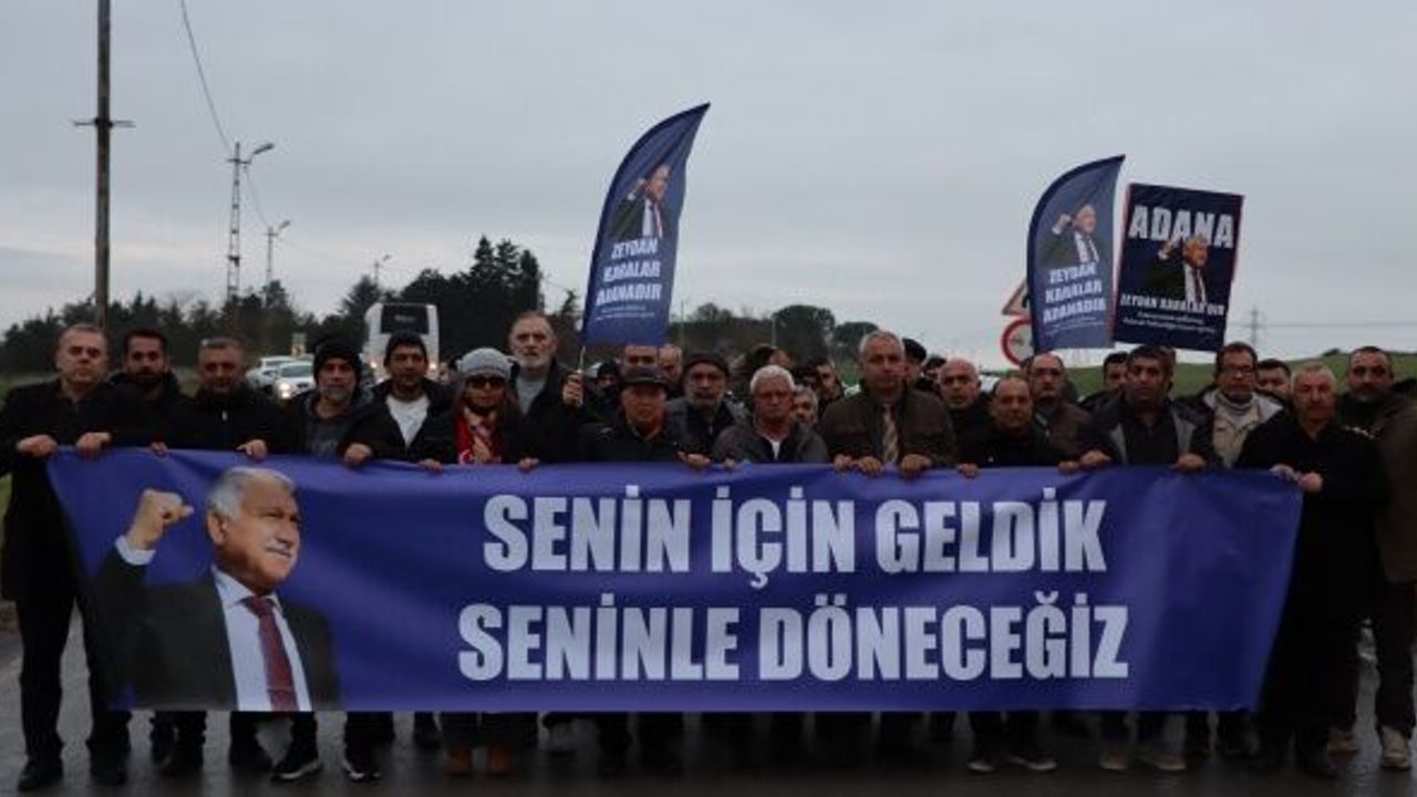 “Senin İçin Geldik Seninle Döneceğiz” yazılı pankart taşıyan Adanalılar, çeşitli sloganlar atarak başkanlarına, duruşma salonunun dışında destek veriyor.