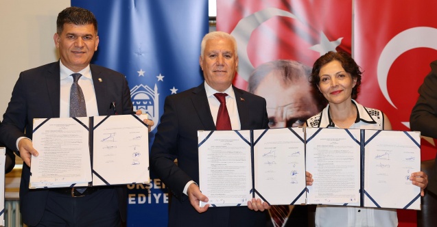 Konuşmaların ardından toplu iş sözleşmesi, Büyükşehir Belediye Başkanı Mustafa Bozbey, Büyükşehir Belediyesi Genel Sekreteri Doç. Dr. Ergül Halisçelik, İnsan Kaynakları ve Eğitim Dairesi Başkanı Bircan Uysal, Yerelsen Genel Sekreter Yardımcısı Hasan Tenlik, Yerelsen TİS Uzmanı İsmail Bayram, Genel-İş Bursa 3 Nolu Şube Başkanı Dilek Çelik, Bursa 2 Nolu Şube Başkanı Onural Keskin, Şube Sekreteri Salih Işık ve Baştemsilci Galip Gezer arasında imzalandı.