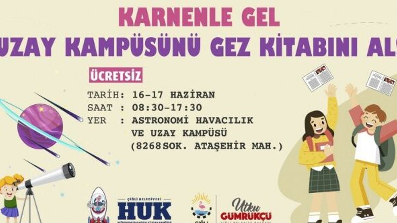 Çiğli Belediyesi her yıl olduğu gibi bu yılda eğitim öğretim yılını tamamlayan öğrencilere bir takım karne sürprizi hazırladı. 16-17 Haziran tarihlerinde karneleriyle birlikte Ataşehir Mahallesi’nde bulunan Astronomi, Havacılık ve Uzay Kampüsüne gelen çocuklar kampüsü ücretsiz olarak gezebilecek.