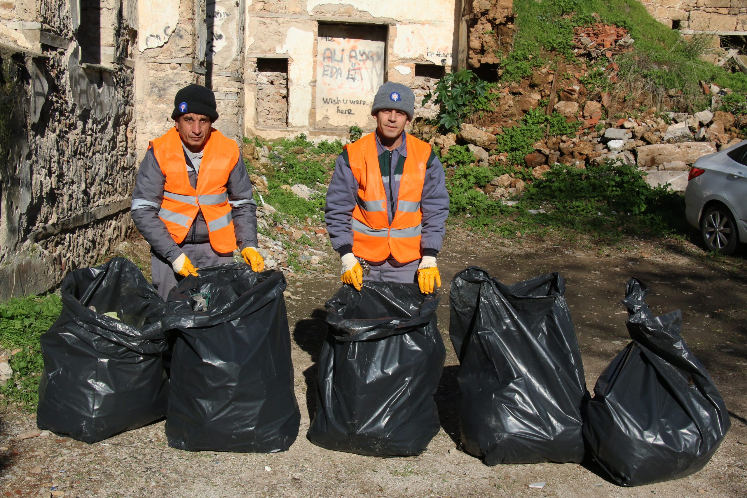 Antalya Büyükşehir Belediyesi ekipleri tarihi Kaleiçi genelindeki metruk alanlarda temizlik çalışması gerçekleştirdi. Ekipler poşetler dolusu çöp çıkarttı.