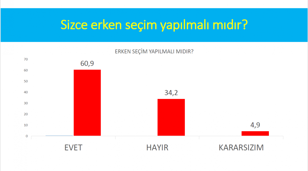 Avrasya Araştırma Şirketi, Ekim ayı genel siyaset araştırmasını yayınladı. Araştırmaya göre yurttaşların yüzde 60,9'u erken seçim istiyor