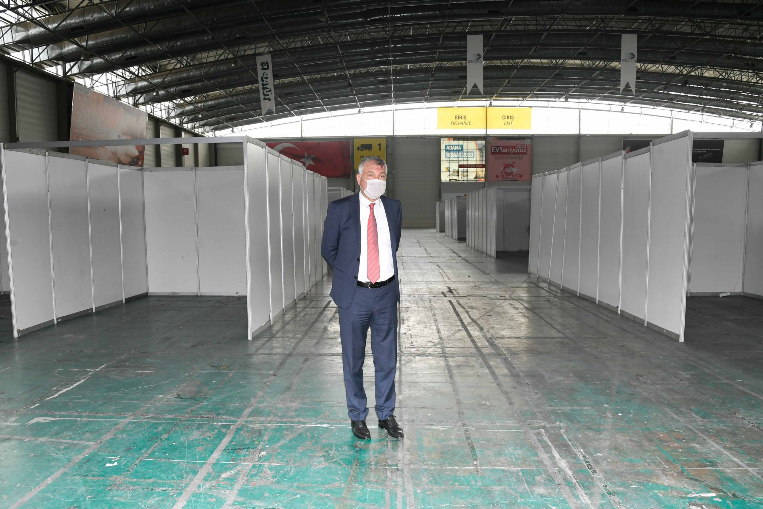 Başkan Zeydan Karalar daha sonra, TÜYAP Fuar Alanı'nda kurulan sahra hastanesinde incelemelerde bulundu.