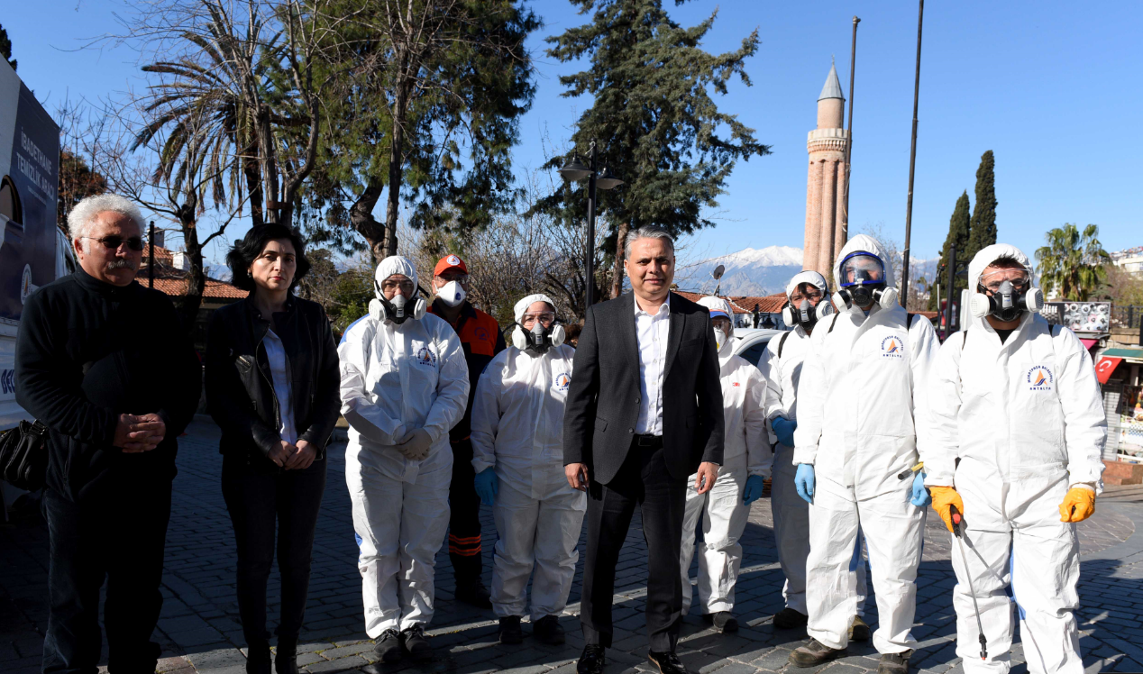Arazöz ve 10 kişilik hijyen ekibinin yer aldığı çalışmalar öncesi Başkan Uysal da bölgede incelemelerde bulundu. Başkan Uysal, burada yaptığı açıklamada, Muratpaşa Belediyesi olarak virüs salgının Avrupa’da yayılım göstermesiyle birlikte kriz masası oluşturarak teyakkuz haline geçtiklerini söyledi. Türkiye’de ilk vakanın duyurulmasıyla birlikte en üst alarm durumunda belediye hizmetleri aksatmadan önlemleri birer birer açıklayıp uygulamaya geçtiklerini anlatan Başkan Uysal, “Geldiğimiz aşamada, toplumun girip çıkmak zorunda olduğu, kamu binaları, hastaneler, aile sağlık merkezleri gibi yerleri de belediye olarak ilaçlıyoruz. Toplumumun yoğun kullandığı kamusal bütün alanları ilaçlıyoruz. Bunun için hazırız yeterince ekibimiz var” diye konuştu.
