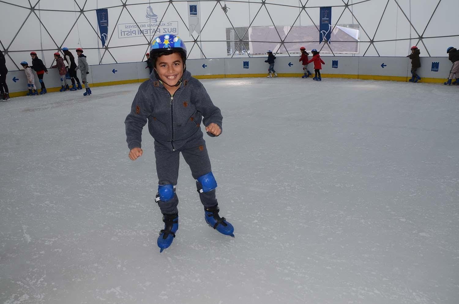 Kuşadası Belediyesi tarafından ilçe halkını kış sporlarıyla tanıştırmak ve kentteki sosyal hayatı hareketlendirmek için açılan buz pateni pistinin yeni misafirleri eğitim desteği alan çocuklar oldu. Sosyal Yardım İşler Müdürlüğü ile İlçe Milli Eğitim Müdürlüğü’nden alınan veriler doğrultusunda belirlenen Kuşadalı 700 çocuk sömestr tatili boyunca belirlenen seanslarda buz pateni keyfi yaşayacak.