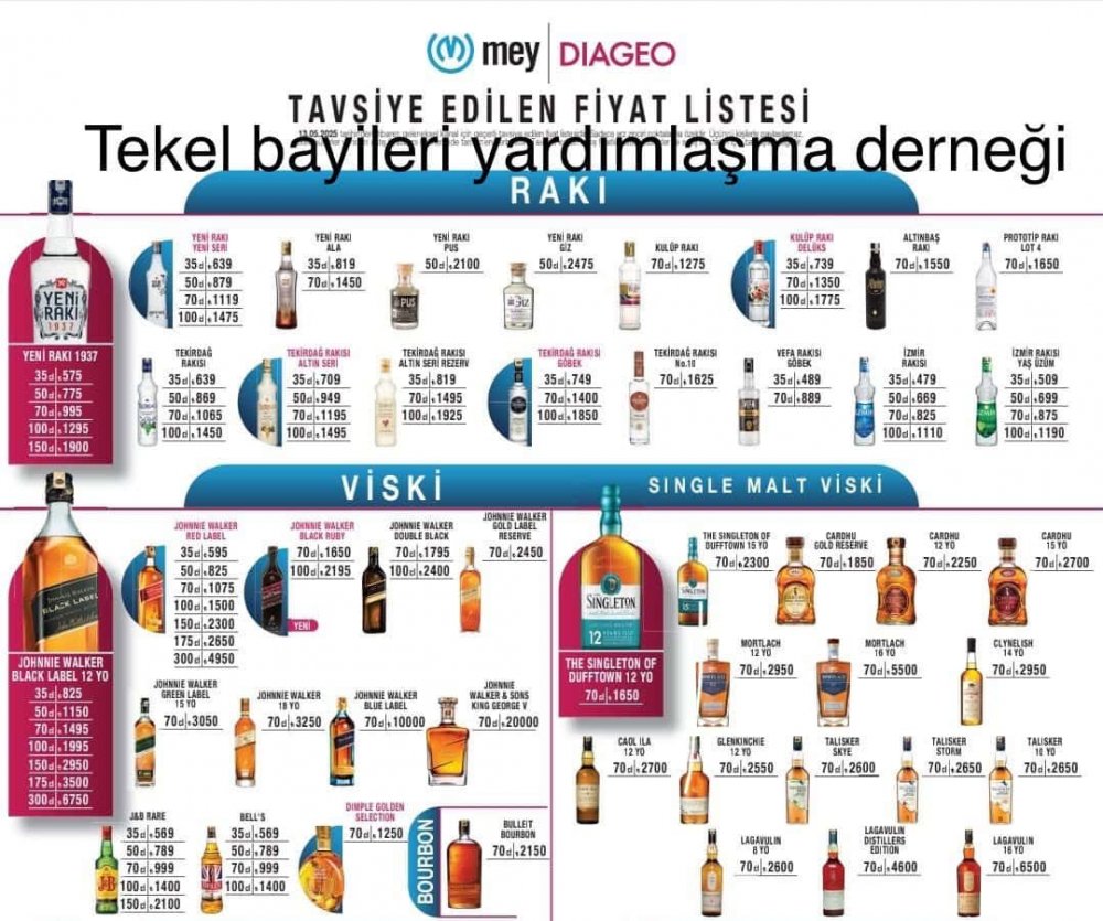 Tekel Bayiler Yardımlaşma Derneği Erol Dündar, yeni fiyat listesini X‘ten duyurdu.