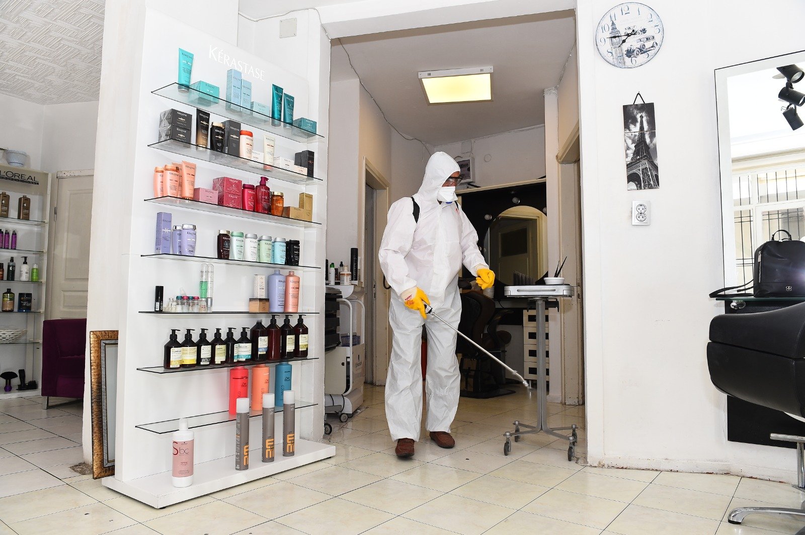 Belediyesi ekipleri, ilçe sınırlarındaki tüm işletmelere yönelik yapmış olduğu rutin temizlik, hijyen ve dezenfekte faaliyetlerine kuaför, berber ve güzellik salonlarını da ekledi. Belediye ekipleri berber, kuaför ve güzellik salonlarına giderek bireysel olarak bakım ve hijyen yaptıran bireylere çevresel hijyen yaparak katkı verdi. Belediye dezenfekte ekibi, personelin genelgeye uyarak maske ve koruyucu ekipmanla görev yaptığı berber, kuaför ve güzellik merkezi salonlarında tüm bireylerin hijyenik ve güvenli bir ortamda hizmet almasını sağlamak için çalışmalarına devam edecek.