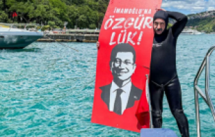 Adalar Belediye Başkanı'ndan deniz altında “İmamoğlu’na Özgürlük” pankartı