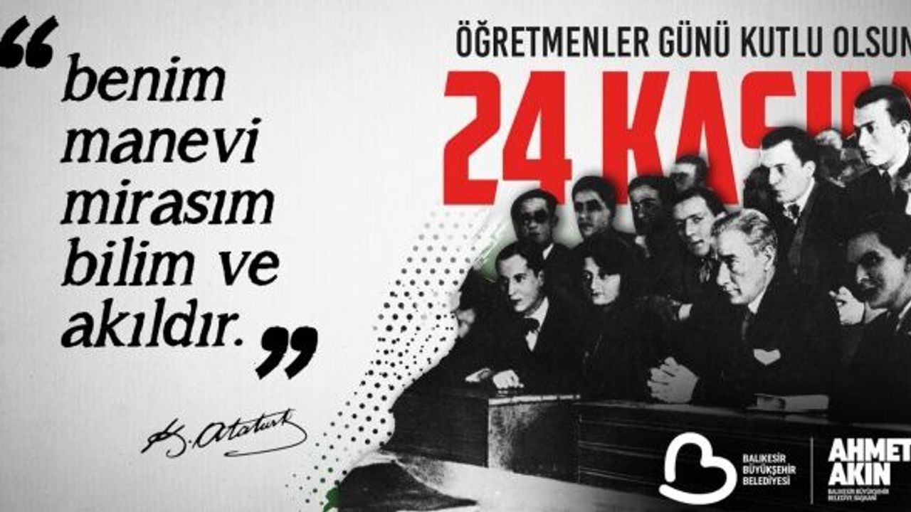 Ahmet Akın yaptığı açıklamada, “Görevini yalnızca bilgi aktarmak olarak değil, bir milleti geleceğe hazırlamak olarak gören tüm öğretmenlerimiz; biliniz ki emeklerinizin değeri asla ölçülemez, yeriniz hiçbir zaman doldurulamaz. Sizler, Balıkesir’imizin ve Türkiye’mizin en önemli güç kaynağısınız. Her biriniz, Cumhuriyet’imizin aydınlık yarınlarının mimarısınız. Bu duygu ve düşüncelerle, başöğretmenimiz Gazi Mustafa Kemal Atatürk başta olmak üzere ülkemize ilim, irfan ve ışık yolunda hizmet etmiş tüm öğretmenlerimizi saygı, minnet ve rahmetle anıyorum. Cumhuriyet’imizin kurucusu Ulu Önder Gazi Mustafa Kemal Atatürk’ün ‘Öğretmenler, yeni nesil sizin eseriniz olacaktır.’ sözünden güç alarak geleceğimizi emanet ettiğimiz tüm öğretmenlerimizin 24 Kasım Öğretmenler Günü’nü kutluyor, başarı, sağlık ve huzur diliyorum.” ifadelerini kullandı.