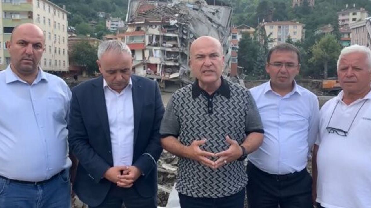Komisyon Sözcüsü Murat Bakan: “İklim ile ilgili bir komisyon kuruldu. Bu komisyonun maksadı ne? Eğer bir problem yoksa komisyon kurulmamalıydı. Eğer bir problem varsa işte problemin sonucu bu. Burada olmalı o komisyon. Sadece Cumhuriyet Halk Partililer üyesi değil o komisyonun. AK Partili üyeleri var, diğer partilerden var. Tüm komisyon üyeleri burada olmalıydı. Burada biz vatandaşımızın yanında olmalıyız, derdine derman olmalıyız, dayanışma içinde olmalıyız ve anlatmak durumundayız. Komisyonu yangın felaketinde olduğu gibi sel için de göreve davet ettik. Bundan daha önemli görev yok. Komisyonun öncelikli görevi bu bölgelere gelmek. Ancak komisyon başkanı bu taleplerimize yanıt vermedi. Biz komisyonun CHP’li üyeleri olarak geldik, buradayız. Bozkurt dere yatağına kurulmuş bir kent... Dere yatağından metrelerce yukarıda 6-7 metre yukarıdaki bir çarşının içinde sular 3 metre yükselmiş, içi kum dolmuş. O kumların içinde yurttaşlarımız var mı onu da bilemiyoruz. Arama kurtarma çalışmaları sürüyor, 100’ün üzerinde insanın kayıp olduğu söyleniyor. 6 yıldır ‘iklim krizi’ diye bağırıyoruz. Dünya bir felakete gidiyor, gezegen bir felakete gidiyor diyoruz. Orman yangınları… Ani yağışlar… Bir yılda yağması beklenen yağış bir günde yağıyor. Elbette iklim krizinin çok büyük etkisi var. Ama 20 yıldır bu ülkeyi sürdürülebilir bir yönetimle değil, ranta dayalı bir ekonomiyle götüren iktidarın da büyük yanlışları var. Bu bölgedeki herkesin ortak fikri; buradaki HES’in kapaklarının açılması selin etkisini yüzde 20 arttırdığı yönünde. Kentin dere yatağına inşa edilmesi, iklim krizine ilişkin önlem alınmaması, dere yataklarının temizlenmemesi, oluşan erozyondan kaynaklı facia, HES’in kapaklarının açılması… Her şey bu felaketi doğurdu. Çok üzgünüz. Vatandaşlarımızın yaralarını sarmak için buradayız. Geldiğimizden beri devletin kurumlarını görüyoruz, yerel yönetimleri görüyoruz. Tüm kamu görevlilerine, gönüllülere teşekkür ediyoruz. Ancak bu işi yönetemeyen Bakanlara teşekkür etmiyoruz. Yangındaki koordinasyonsuzluk, beceriksizlik burada da var.”