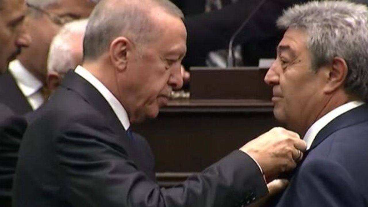 Bugün AKP Grup Toplantısı'na katılan Ataş'a yeni partisinin rozeti, AKP'li Cumhurbaşkanı Recep Tayyip Erdoğan tarafından takıldı.