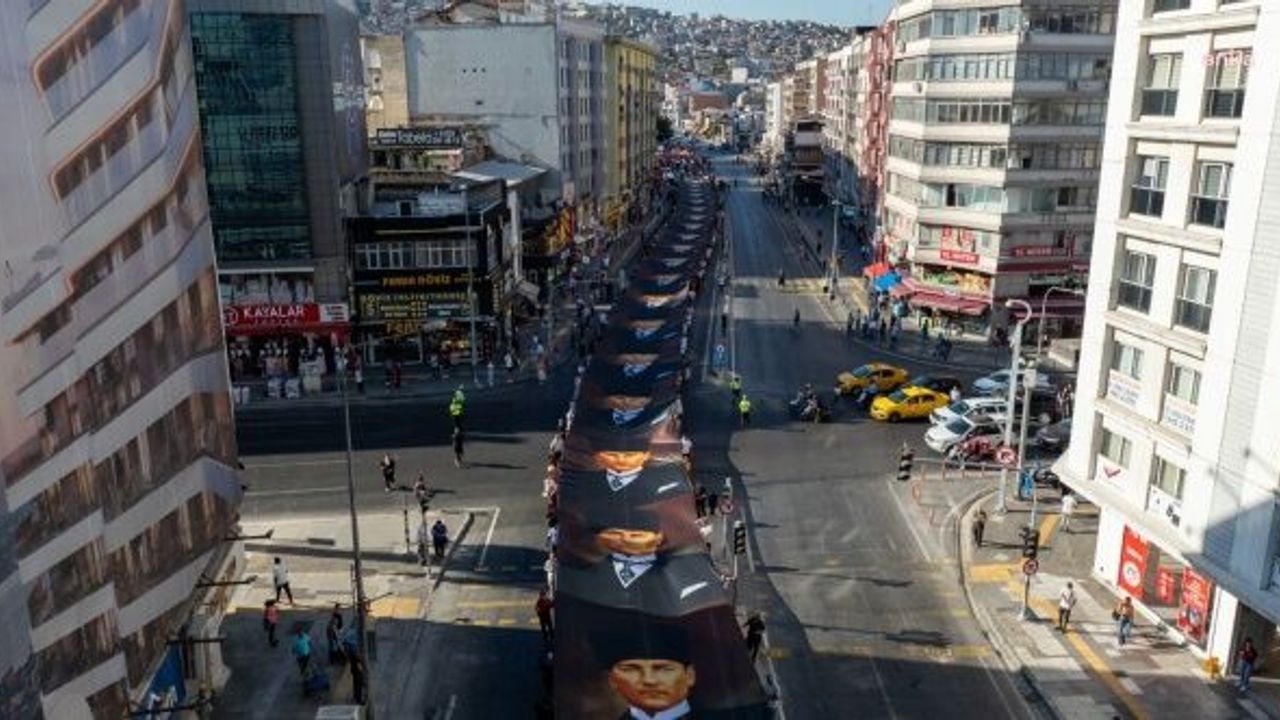 Yürüyüşte, vatandaşlar tarafından 350 metrelik Atatürk posteri taşındı. Kutlamalar Cumhuriyet Meydanı’nda devam etti.