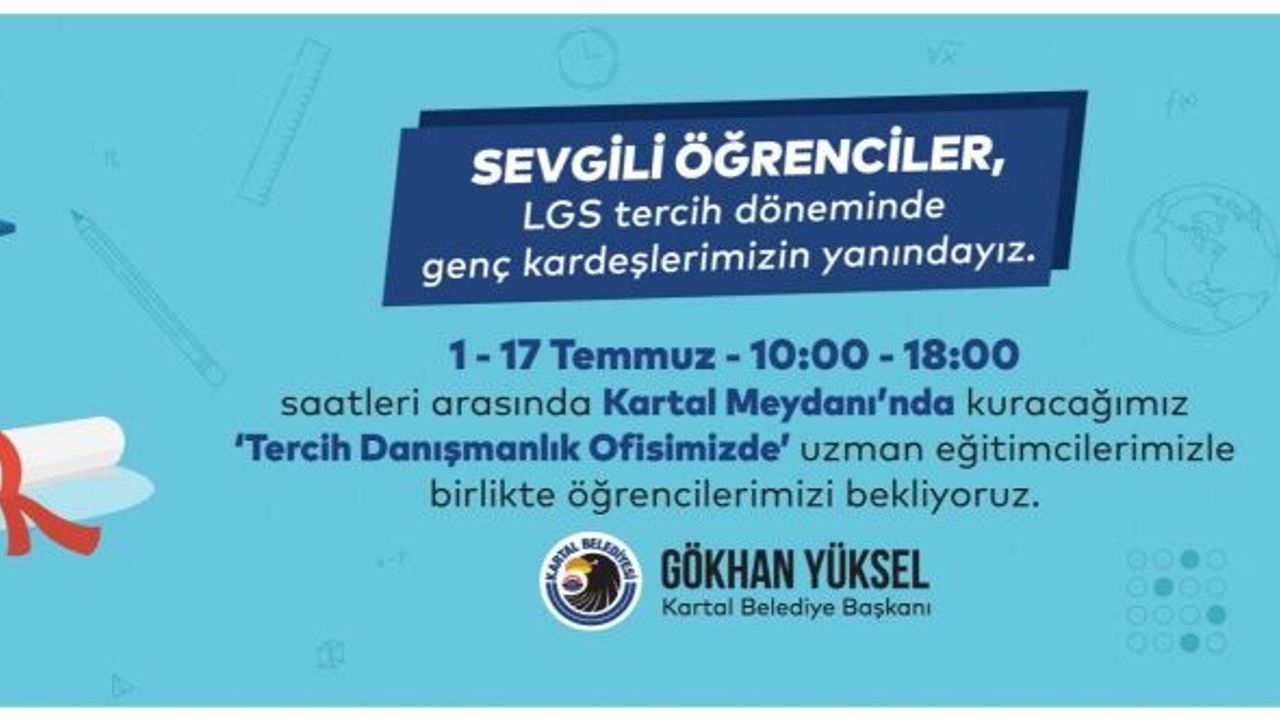 Kartal Belediye Başkanı Gökhan Yüksel, Ücretsiz LGS Tercih Danışmanlığı ile Kartallı öğrencilerin ve ailelerin tercih döneminde yanlarında olduklarını kaydederek; “Sevgili öğrenciler, LGS tercih döneminde sizlerin en doğru tercihi yapabilmeniz için uzman eğitimcilerimizle yanınızdayız. Başarılı bir tercih dönemi için tüm öğrencilerimizi 1 Temmuz ile 17 Temmuz tarihleri arasında Kartal Meydanı’nda kuracağımız Tercih Danışmanlık Ofisimize bekliyoruz.” ifadelerini kullandı.