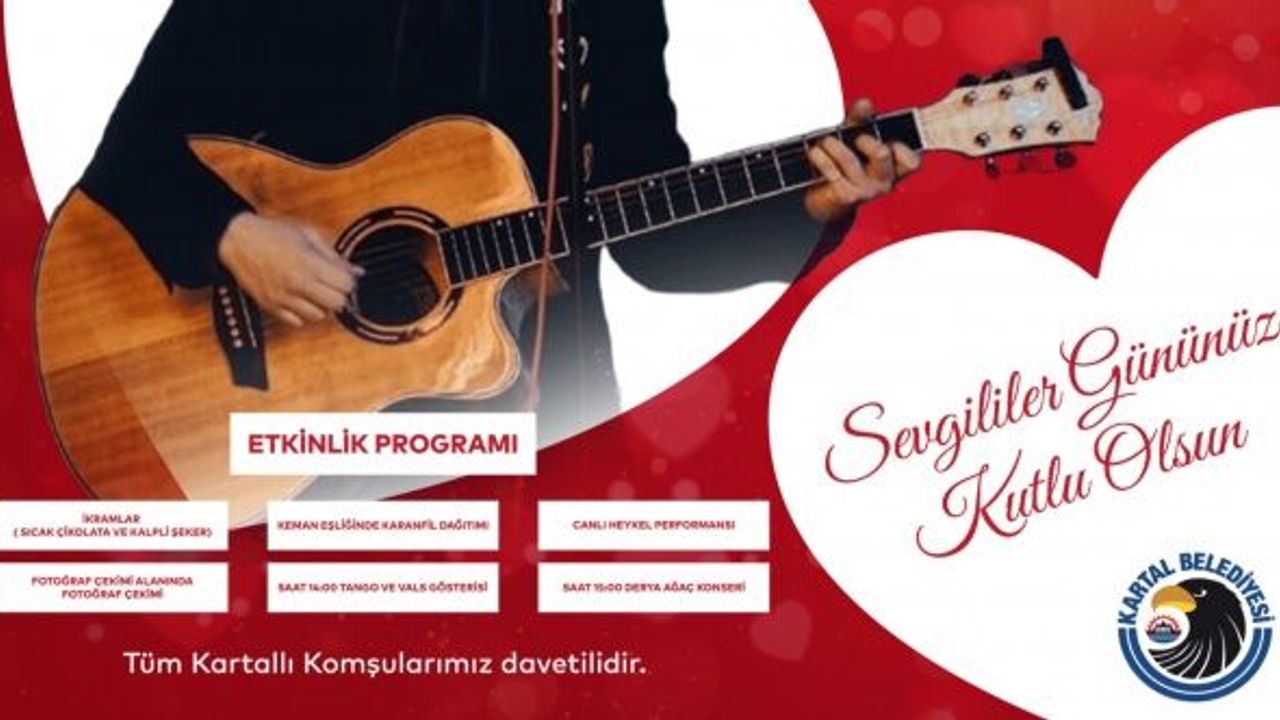 Kartal Belediyesi 14 Şubat Sevgililer Günü dolayısıyla bu yıl da birbirinden renkli ve özel etkinlikler düzenliyor. Kartallılar, 13-14 Şubat günü Organik Çadır Etkinlik Alanı’nda, 14 Şubat Cuma günü ise Kartal Ankara Caddesi’nde buluşacak.