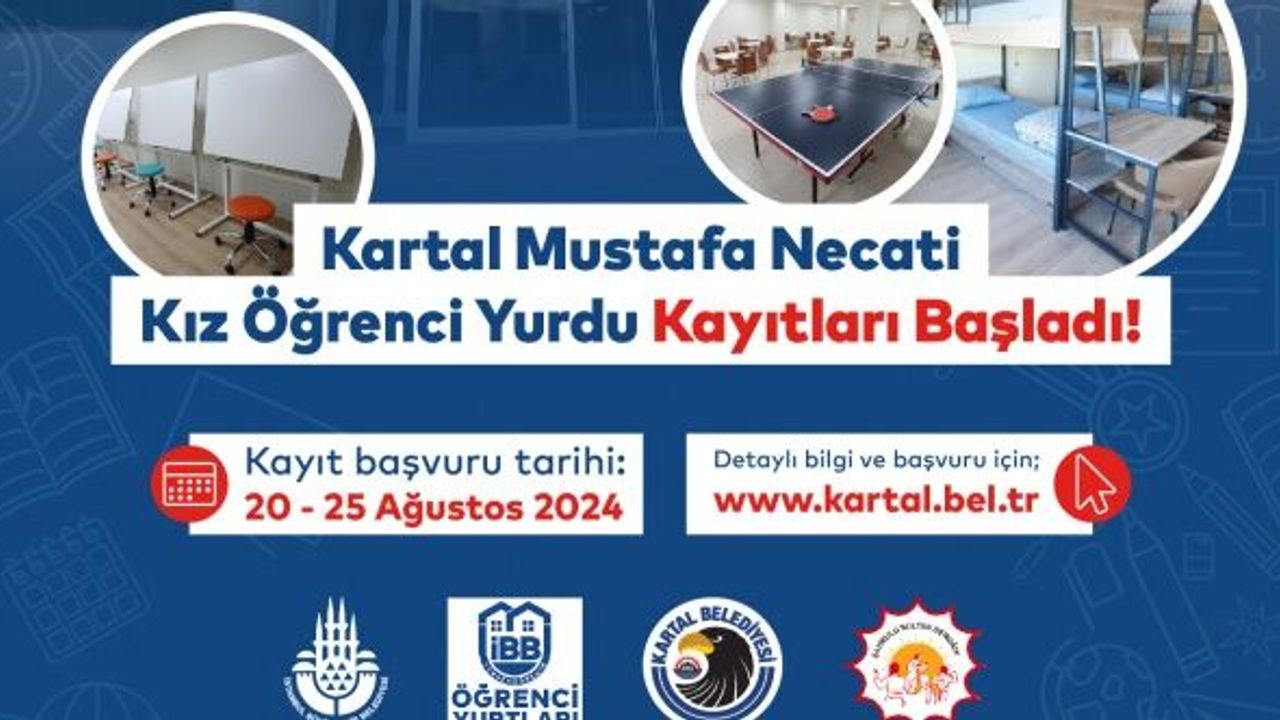 Kartal Belediyesi Mustafa Necati Yükseköğrenim Kız Öğrenci Yurdu için başvurular, https://bit.ly/KizOgrenciYurduOnKayit linki üzerinden yapılacak.