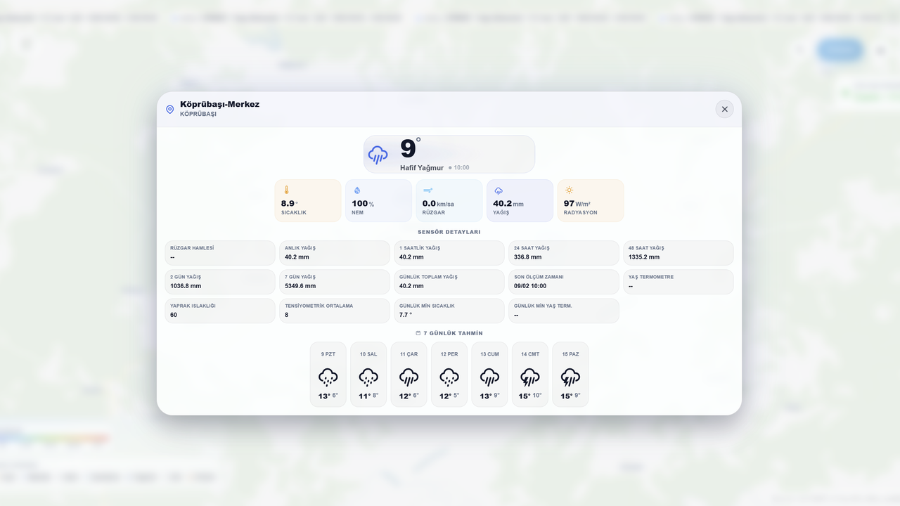 Sahadan gelen istasyon ölçümleri ile tahmin verilerini birlikte değerlendirebilen sistem üzerinden vatandaşlar ve üreticiler, verileri güncel olarak ekranda görebilecek. Böylece kullanıcılar, hem mevcut durumu hem de yaklaşan riskleri net biçimde görebiliyor olacak.