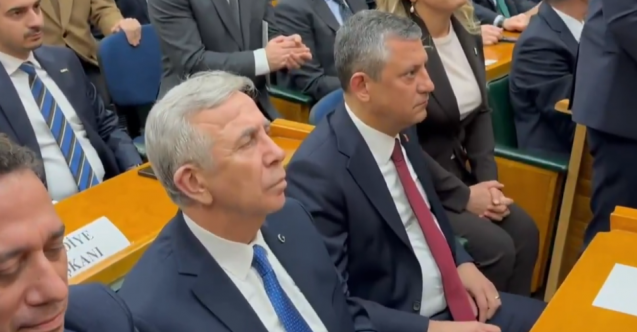 Tıklım tıklım dolu olan grup toplantı salonunda Özel ve Yavaş'ın salona birlikte girmesiyle alkış tufanı koptu.