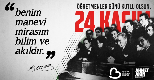 Ahmet Akın yaptığı açıklamada, “Görevini yalnızca bilgi aktarmak olarak değil, bir milleti geleceğe hazırlamak olarak gören tüm öğretmenlerimiz; biliniz ki emeklerinizin değeri asla ölçülemez, yeriniz hiçbir zaman doldurulamaz. Sizler, Balıkesir’imizin ve Türkiye’mizin en önemli güç kaynağısınız. Her biriniz, Cumhuriyet’imizin aydınlık yarınlarının mimarısınız. Bu duygu ve düşüncelerle, başöğretmenimiz Gazi Mustafa Kemal Atatürk başta olmak üzere ülkemize ilim, irfan ve ışık yolunda hizmet etmiş tüm öğretmenlerimizi saygı, minnet ve rahmetle anıyorum. Cumhuriyet’imizin kurucusu Ulu Önder Gazi Mustafa Kemal Atatürk’ün ‘Öğretmenler, yeni nesil sizin eseriniz olacaktır.’ sözünden güç alarak geleceğimizi emanet ettiğimiz tüm öğretmenlerimizin 24 Kasım Öğretmenler Günü’nü kutluyor, başarı, sağlık ve huzur diliyorum.” ifadelerini kullandı.