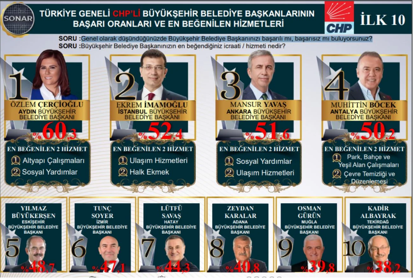 TÜRKİYE GENELİ CHP’Lİ BÜYÜKŞEHİR BELEDİYE BAŞKANLARININ BAŞARI ORANLARI VE EN BEĞENİLEN HİZMETLERİ