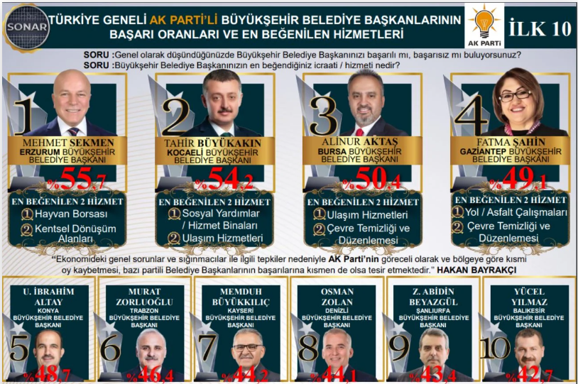 TÜRKİYE GENELİ AKP’Lİ BÜYÜKŞEHİR BELEDİYE BAŞKANLARININ BAŞARI ORANLARI VE EN BEĞENİLEN HİZMETLERİ