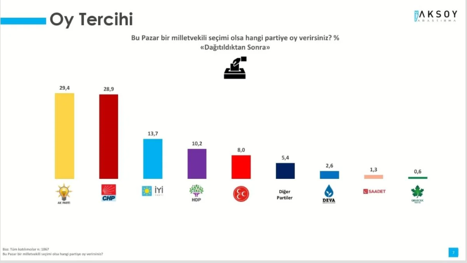 Aksoy Araştırma'nın sahibi Ertan Aksoy, yüzde 95 güven aralığında yüzde 3 hata payıyla bin 67 kişi ile gerçekleştirildiğini ifade etti.